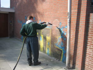 Op gebied van gevelreiniging kunnen wij zowel particuliere als de zakelijke markt bedienen door inzet van een hoge druk installatie en hoogwerkers. Wij houden de milieueisen streng in de gaten en verzorgen de vergunning. Wij verwijderen ook graffiti.